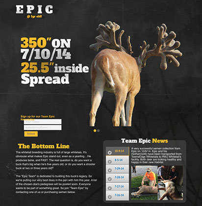 A great way to show off your breeder buck and to build his legacy amongst the deer breeding industry. Whether you have one owner or multiple owners, it allows the partners to invest in one website at an affordable price. And it can easily be linked to each investor's personal website(whether it's made by Glenny Designs or another company).